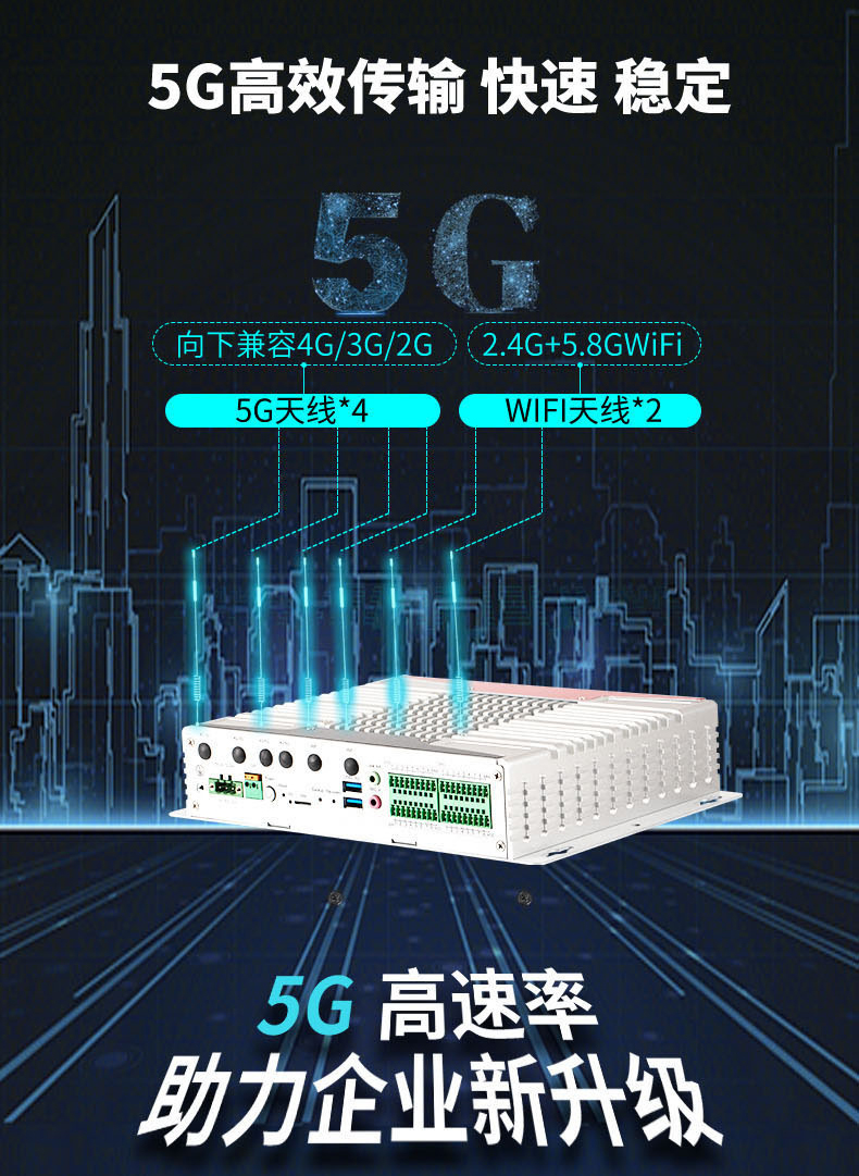 5G 是新一代移動通信系統(tǒng),5G 與工業(yè)生產(chǎn)融合之后,逐步成為支撐工業(yè)生產(chǎn)的基礎(chǔ)設(shè)施。5G 與工業(yè)生產(chǎn)中既有研發(fā)設(shè)計系統(tǒng)、生產(chǎn)控制系統(tǒng)及服務(wù)管理系統(tǒng)等相結(jié)合,可以全面推動 5G 垂直行業(yè)的研發(fā)設(shè)計、生產(chǎn)制造、管理服務(wù)等生產(chǎn)流程的深刻變革,實現(xiàn)制造業(yè)向智能化、服務(wù)化、高端化轉(zhuǎn)型。為滿足市場對5G通信的應(yīng)用需求,特控近日推出了 一款全新緊湊型高性能嵌入式5G工控機MEC-T8564。