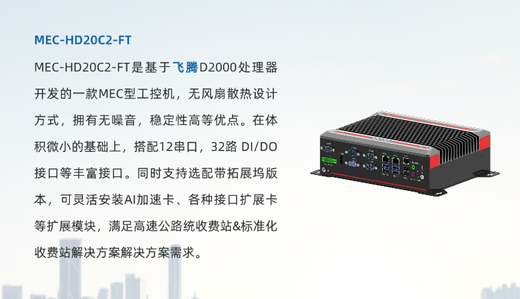 方案圍繞智慧化、集約化理念,車道端配置自助發(fā)卡/繳費設(shè)備,車道外設(shè)IP化設(shè)備,通過內(nèi)置MEC-HD20C2-FT進行車道外設(shè)協(xié)議轉(zhuǎn)換,實現(xiàn)車道外設(shè)實時、集中監(jiān)控,促進車道減員增效。