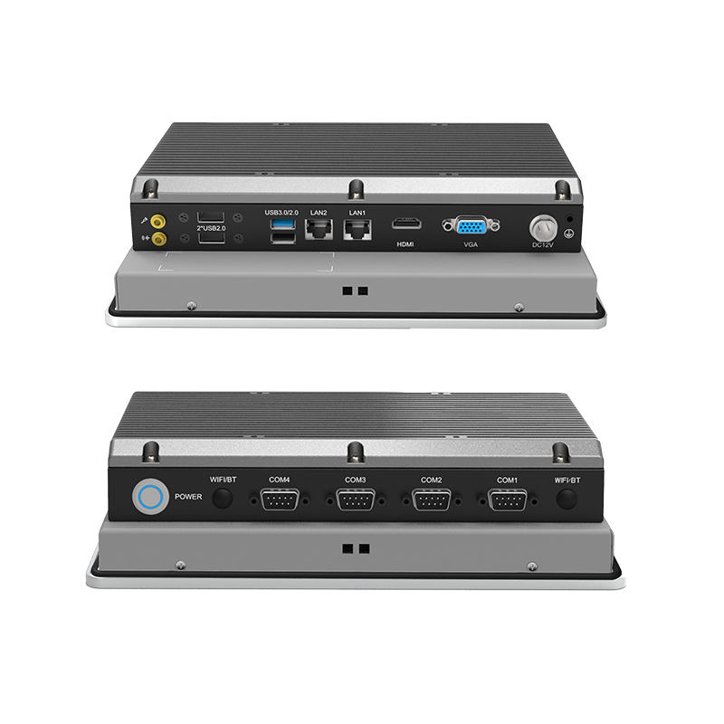 按需選配:英特爾®賽揚® 處理器 J1900 板載處理器,TDP 10W外觀設(shè)計:鋁型材一體成型,科技時尚穩(wěn)定可靠:純工業(yè)無風扇設(shè)計,大面積鋁鰭散熱,箱體材質(zhì)可抗接觸式6Kv強電磁干擾;液晶屏接觸處加強型密封膠圈設(shè)計,面板防水防撞擊人機界面友好:純屏10點工規(guī)電容觸控,操作更便利接口豐富:2*Intel LAN,1*HDMI,1*VGA,4*COM,4*USB,支持1*Msata,1*2.5寸盤位,1*MINI PCIE(支持WIFI或4G功能)